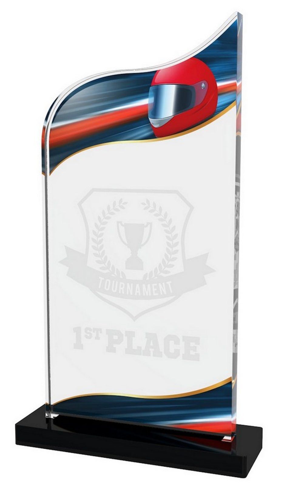 Akrylátová trofej s UV potiskem. Možnost vložení textu přímo do trofeje v ceně. Tloušťka 1 cm. Výšky trofejí jsou orientační.