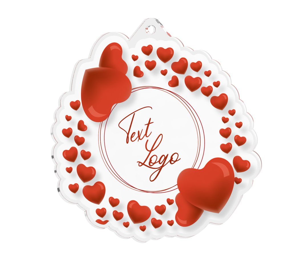 Valentýnská akrylátová medaile. Tloušťka 3 mm. V místě textu: TEXT /LOGO je možnost vložení vlastního textu / loga. Cena medaile za 1 kus včetně stuhy.