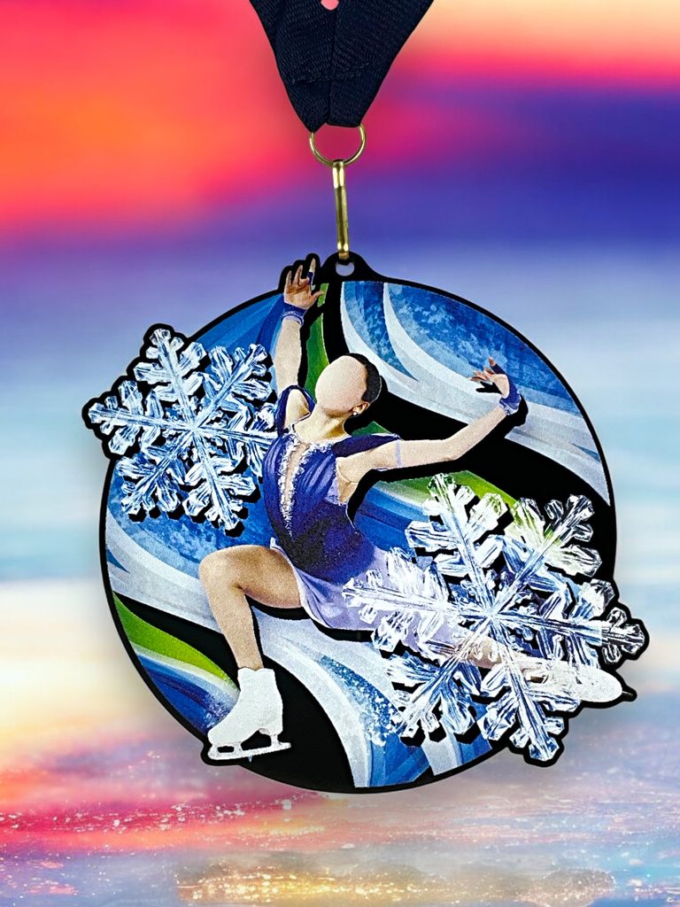Akrylátová medaile. Tloušťka 0,3 cm. Cena medaile za 1 kus včetně stuhy. Speciální černý lesklý akryl. Speciální vrstvený tisk.