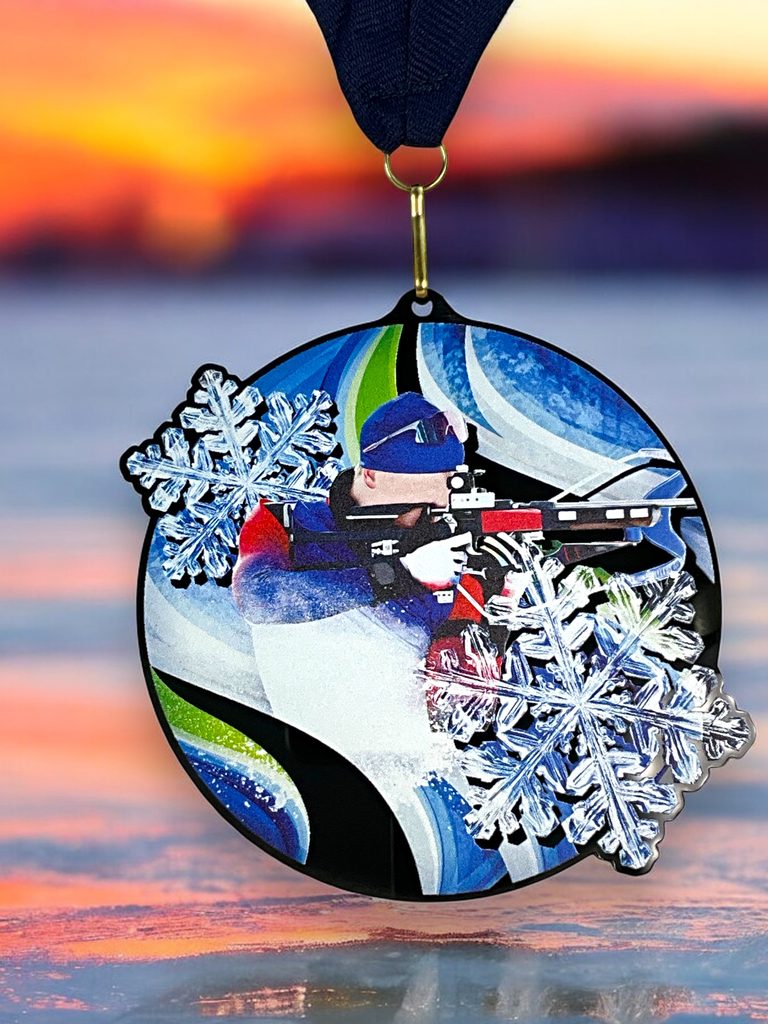 Akrylátová medaile. Tloušťka 0,3 cm. Cena medaile za 1 kus včetně stuhy. Speciální černý lesklý akryl. Speciální vrstvený tisk.