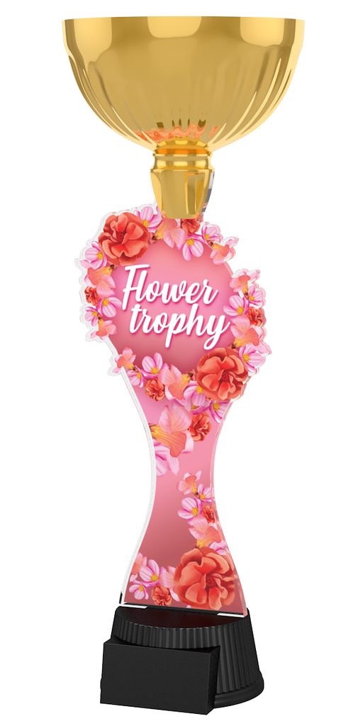Designová květinová trofej pro všechny příležitosti. V místě textu: FLOWER TROPHY je možnost vložení vlastního textu / loga, NENÍ SOUČÁSTÍ TROFEJE, JEDNÁ SE O ILUSTRATIVNÍ TEXT. Akrylátová trofej s UV potiskem. V ceně trofeje není zahrnuta cena štítku. Akrylátový motiv tloušťka 0.6 cm. Podstavec černý plastový. Oboustranný tisk.