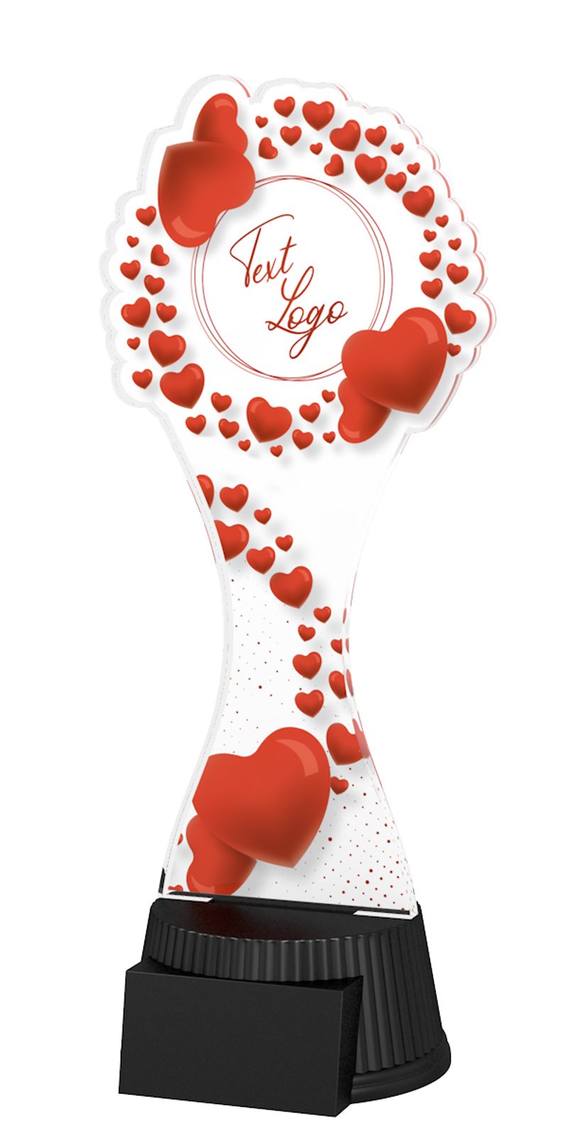 Akrylátová trofej s UV potiskem. Oboustranný tisk. Prostor pro logo a text je plně přizpůsobitelný – můžete zde mít svůj vlastní návrh.V ceně trofeje není zahrnuta cena štítku. Akrylátový motiv. Tloušťka 0.6 cm. Podstavec černý. Výšky trofejí jsou orientační.