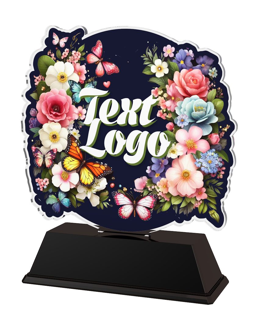 Designová květinová trofej pro všechny příležitosti. V místě textu: Text Logo je možnost vložení vlastního textu / loga, NENÍ SOUČÁSTÍ TROFEJE, JEDNÁ SE O ILUSTRATIVNÍ TEXT. Akrylátová trofej s UV potiskem. Jednostranný tisk. V ceně trofeje není zahrnuta cena štítku. Tloušťka 0.4 cm. Podstavec černý. Výšky trofejí jsou orientační.