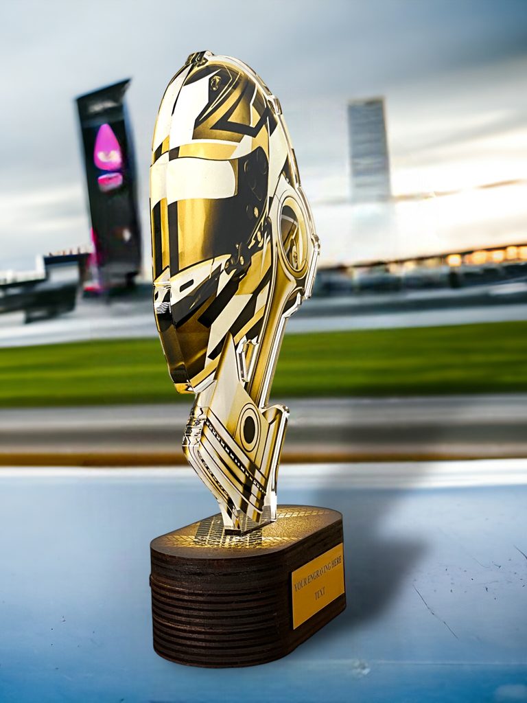 Akrylátová trofej s dřevěným podstavcem a UV potiskem. Výšky trofejí jsou orientační. V ceně trofeje není zahrnuta cena štítku.