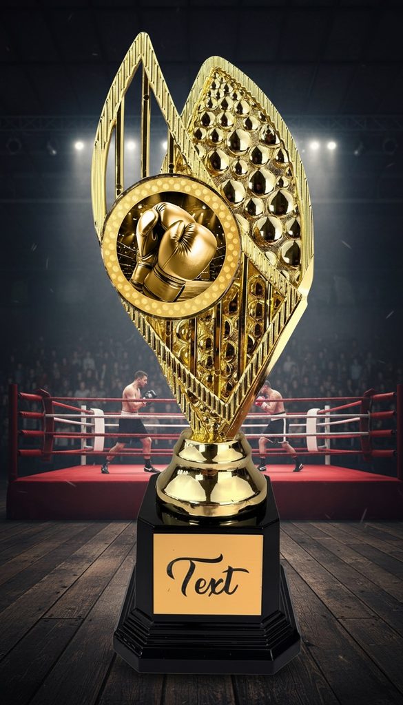 Stylová trofej v barvách zlato, stříbro nebo bronz, výška 31 cm. Designový emblém se sportovním motivem v nejvyšší kvalitě tisku s lakem. Možnost doplnění štítku dle vaší volby.