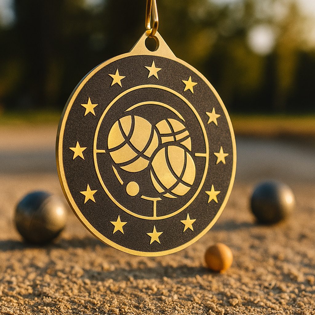 Medaile z kvalitního kovu s lesklým povrchem a tištěným sportovním motivem. Dostupná ve zlaté, stříbrné a bronzové barvě. Průměr 6 cm, tloušťka 1,5mm.