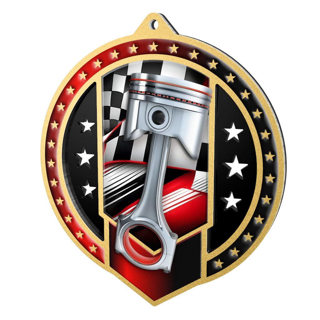 Luxusní kovová medaile naší produkce – vyrobená z odolné nerezové oceli v kombinaci s černým akrylátem, se zrcadlovým povrchem, jedinečným UV tiskem ve vysokém rozlišení a s 2D efektem.