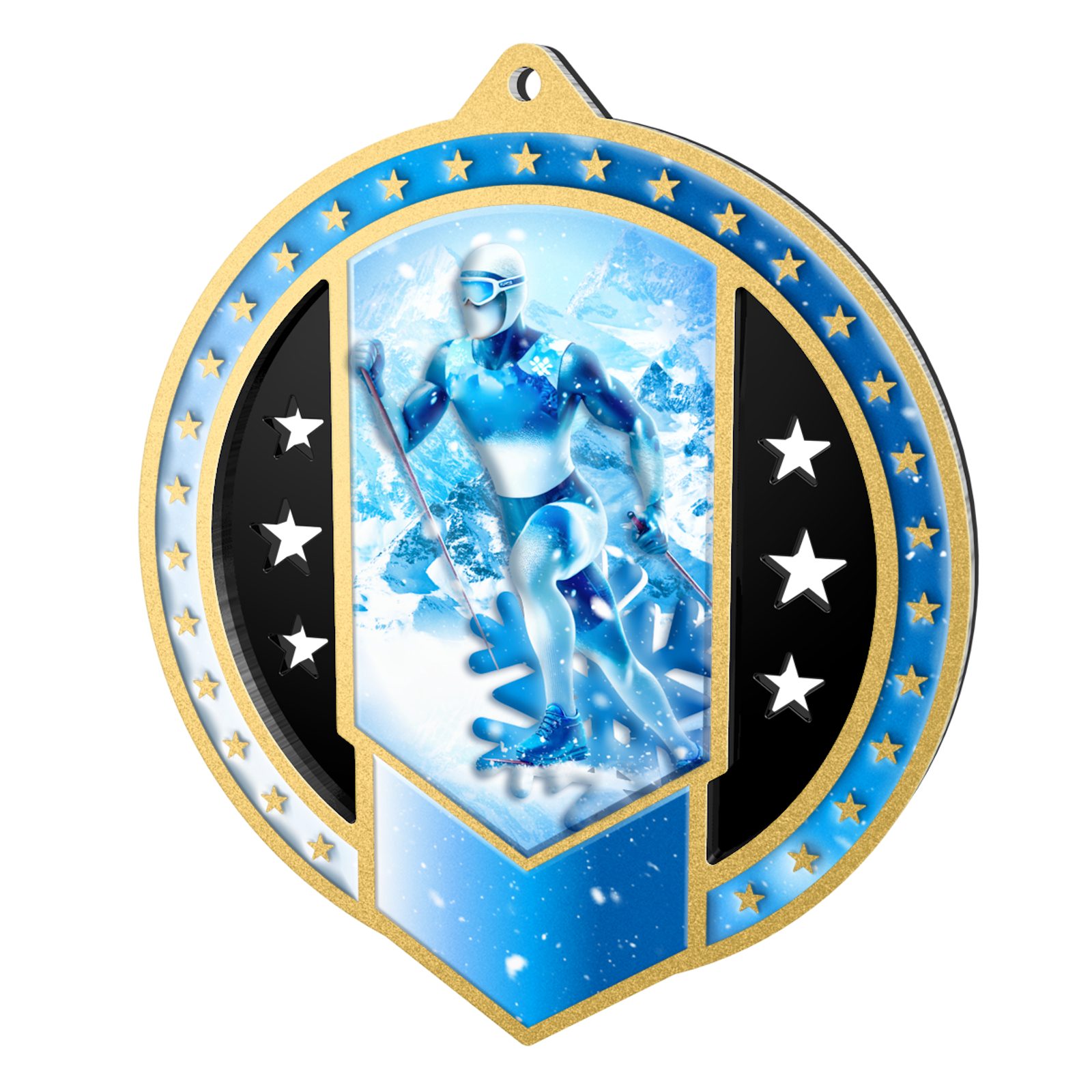 Luxusní kovová medaile naší produkce – vyrobená z odolné nerezové oceli v kombinaci s černým akrylátem, se zrcadlovým povrchem, jedinečným UV tiskem ve vysokém rozlišení a s 2D efektem.