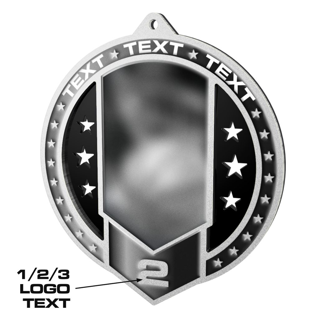 Luxusní kovová medaile naší produkce – vyrobená z odolné nerezové oceli v kombinaci s černým akrylátem, se zrcadlovým povrchem, jedinečným UV tiskem ve vysokém rozlišení a s 2D efektem.