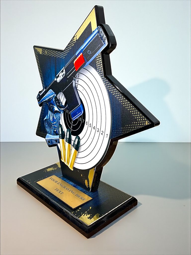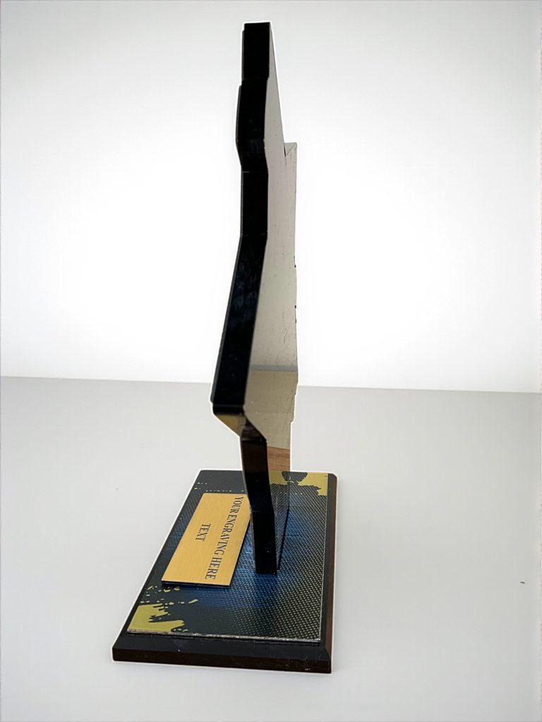 Elegantní a originální trofej vyrobená z černého akrylu o tloušťce 8 mm. Na přední straně je umístěn detailně zpracovaný kovový motiv o tloušťce 1 mm, vytvořený speciální technologií 2D tisku s lakem, která dodává motivu výraznou hloubku a lesk.