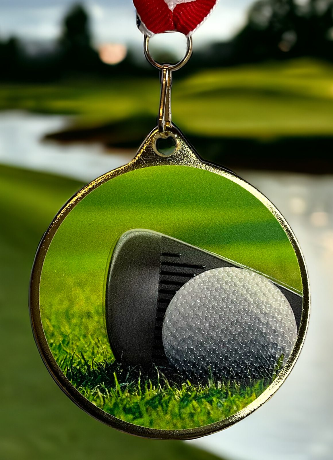Kovová medaile s UVHQ potiskem. Ceny medailí za 1 kus včetně stuhy - trikolóry.