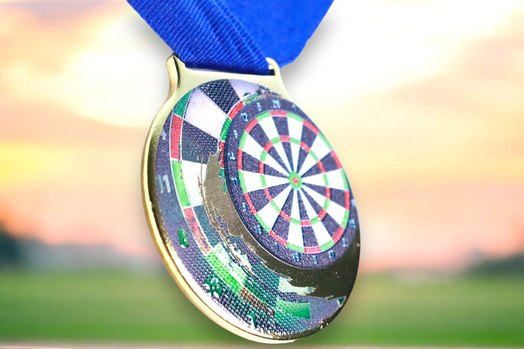 Kovová medaile s UVHQ potiskem a speciálním 3D lakem. Ceny medailí za 1 kus včetně provlékací stuhy.