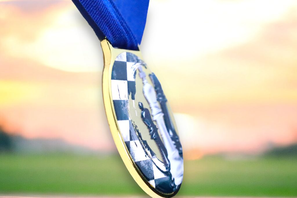 Kovová medaile s UVHQ potiskem a speciálním 3D lakem. Ceny medailí za 1 kus včetně provlékací stuhy.