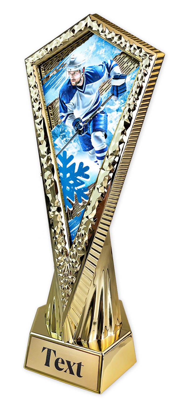 Elegantní a moderní trofej vyrobená z kvalitního plastu s akrylátovým motivem. Dostupná ve třech barevných variantách o výšce 27cm. Na spodní část lze přidat štítek, není zahrnuto v ceně poháru.